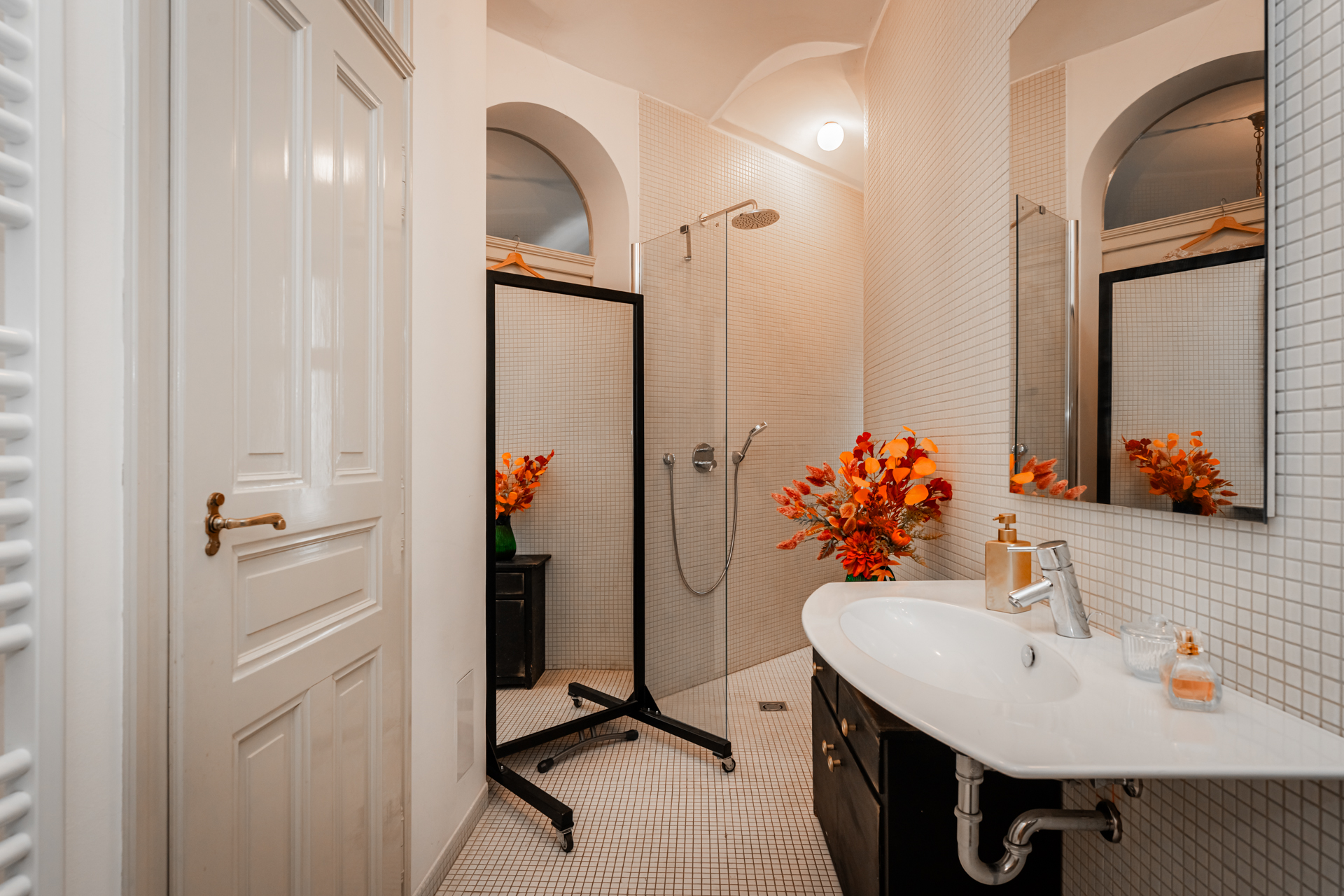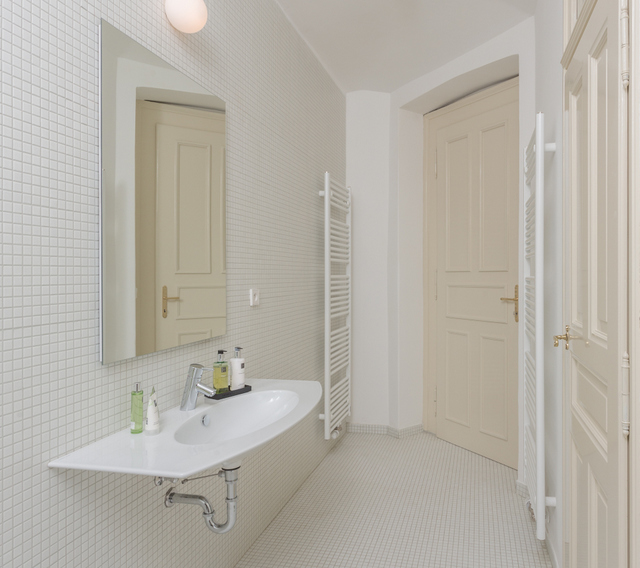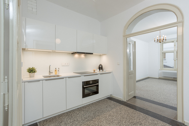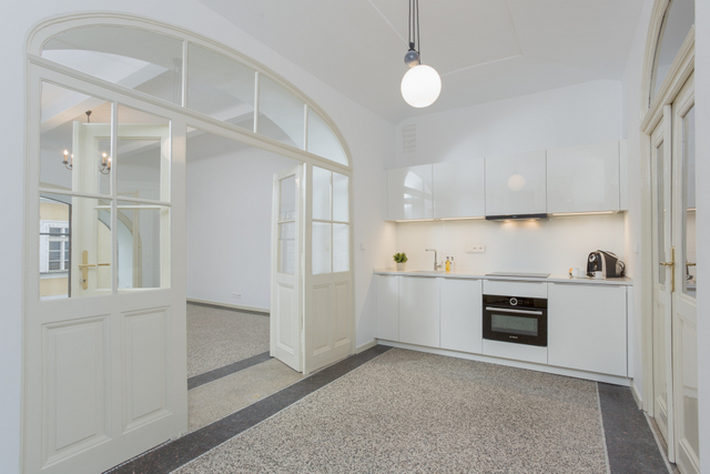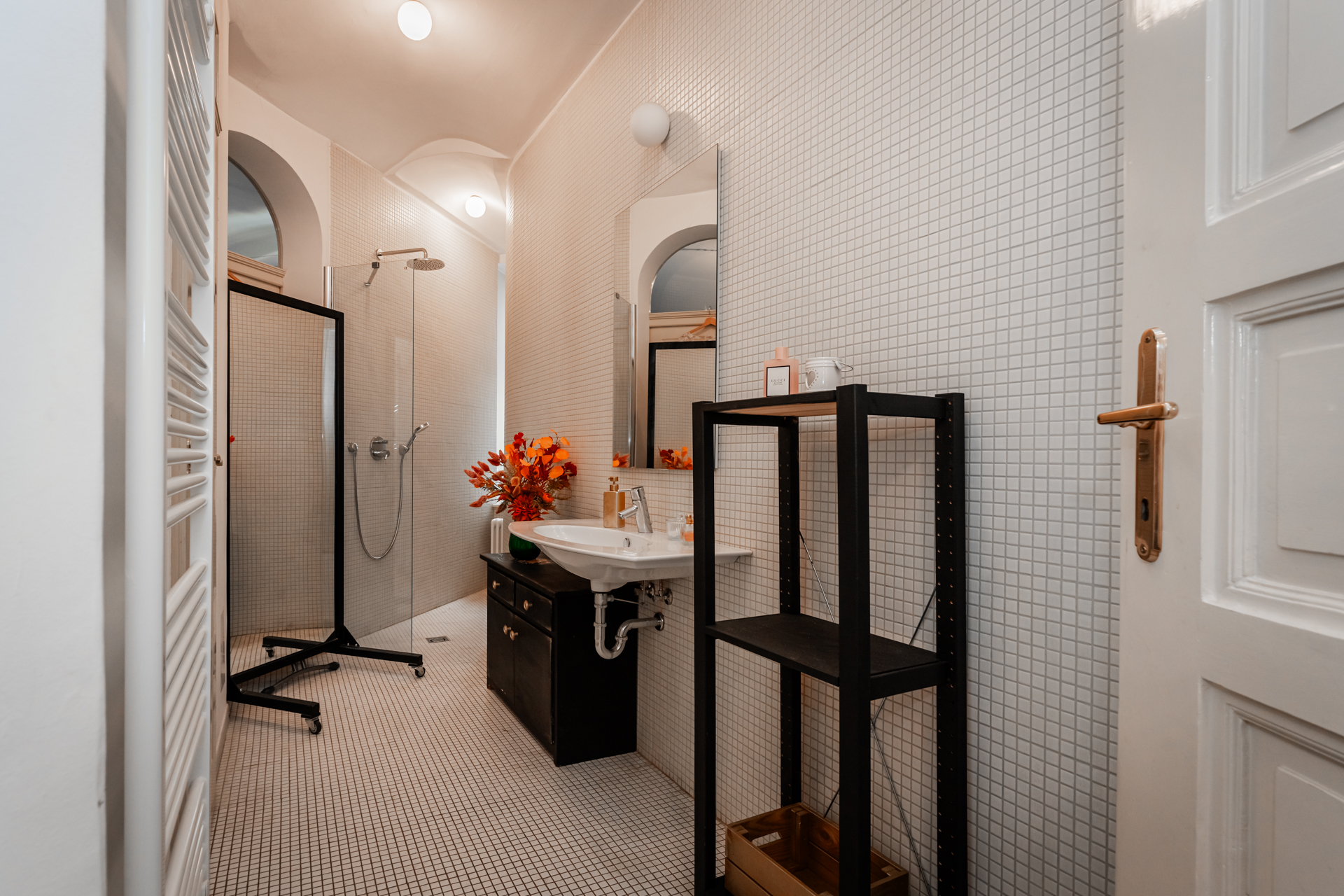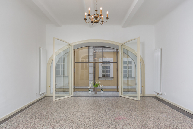 Zrekonstruovaný ateliér v 1. patře domu v atraktivní lokalitě Prahy 1. Větší pokoj se zimní zahradou. Teracové podlahy! Sprchový kout. Volný od února 2026.